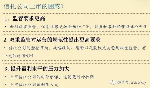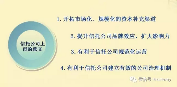 他认为,对于信托公司来说,上市不仅可以为信托公司开拓市场化、规范化的资本充足渠道,还可以提升品牌效应扩大影响力,以及规范运营和建立有效治理机制。