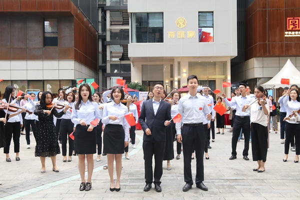 为庆祝新中国成立70周年,弘扬爱国主义精神,凝聚干部员工团结奋进的强大合力,5月27日,公司举行了歌曲《我和我的祖国》员工大合唱和“金融知识普及宣传+我和我的祖国快闪”活动。