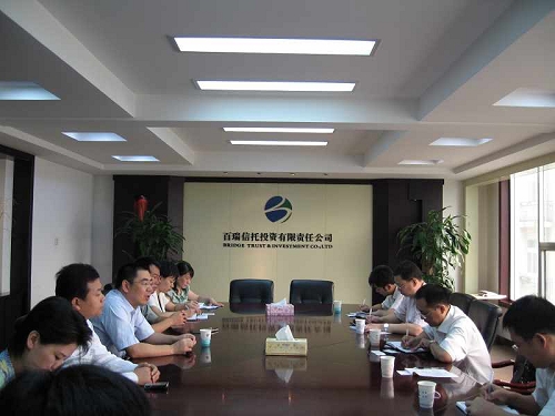 2007年8月7日至8月13日,赵辉副总裁率信托一部、投资银行部、信托财务部、计划财务部、人力资源部等部门负责人和业务骨干一行七人赴郑州、济南,与百瑞信托投资有限责任公司、中原信托投资有限公司、英大信托投资有限责任公司、山东省国际信托投资有限公司就行业发展战略构想、信托业务拓展情况、信托产品营销等方面与同行进行交流、研讨。