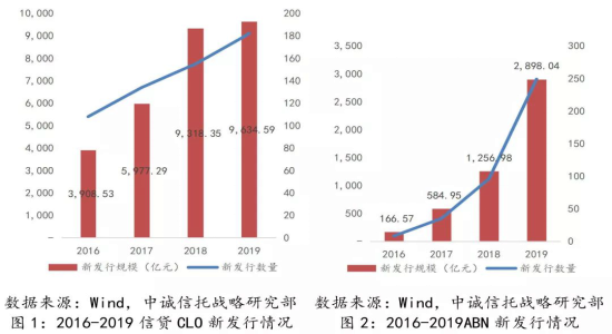 从2019年情况来看,信托公司资产证券化业务市场竞争更加激烈。一是更多信托公司参与资产证券化业务。信贷CLO方面,参与公司由2018年的16家增至2019年的23家;ABN方面,参与公司由2018年的25家增至2019年的35家。