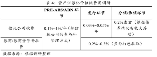 未来,信托公司将摆脱单纯SPV角色,尽快构建业务能力,提高业务主导性,拓展“发行+分销”打包服务,资产证券化业务将逐步提升对信托公司的收入贡献。从资产证券化价值链来看,信托公司开展Pre-ABS/ABN业务带有较大的机会性,但分销环节的积极参与已成为各家的重要发力点,实行“发行+分销”打包将成为业务趋势。一方面,通过实施“发行+分销”打包,整体报酬率将达到千二以上,资产证券化业务将获得更好的收入贡献。另一方面,报酬率的提高有利于提高业务人员展业积极性,有利于吸引外部成熟人才,并进一步提高信托公司开展资产证券化业务的能力和竞争优势。据调研,券商/券商资管等开展资产证券化业务,多采取“发行+承销”打包的服务方式,合计收费在千二到千三左右,同时券商/券商资管等往往采取前端一次性收费的方式,相比之下信托公司发行环节按年收费和分销环节一次性收费则可实现更高收入,因此在实施市场化考核的情况下,信托公司资产证券化业务人员展业积极性将有所提高,对外部成熟人才的吸引力也将增强,信托公司资产证券化业务的竞争优势将进一步凸显。