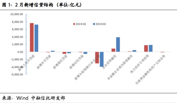 从社融表现来看,2月社融走低符合市场心理预期,疫情冲击下市场尚未完全复工是主要扰动因素,信贷活动和企业融资是2月社融数据的主要增长力量。
