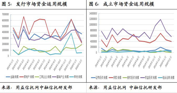 相较于基础产业类信托,金融类信托受到疫情影响相对较小,其主要投向的信托、消费金融等领域对于信托公司而言展业更加容易判断,更易通过远程化、电子化进行开展,因此在2月取得一定增长也是市场合理选择后的结果。