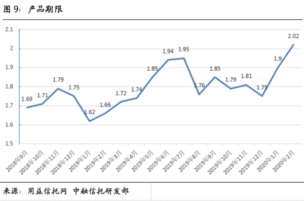 从产品流动性来看,2月信托产品平均期限2.02年,较1月上升0.12年。从结构来看,2月集合信托1.5年内的产品从713款进一步降至546款,1.5-2年期的产品从602款至479款;2年期以上的产品则有190款。