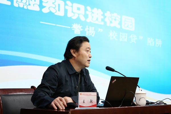 王敏处长围绕“防范校园贷陷阱”主题给大学生们上了一堂内容详实、通俗易懂、案例典型的金融知识普及课。通过对真实案例的分析,就如何识别防范和抵御“校园贷”、开展金融知识进校园活动的意义、金融机构履行消费者宣传教育主体责任、学生群体维护自身合法权益等方面进行了详尽而又生动的讲解。