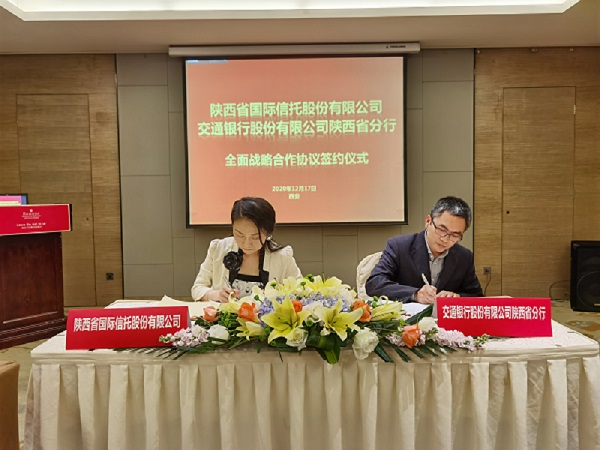 12月17日,公司与交通银行陕西省分行举行全面战略合作协议签约仪式。公司业务总监孙西燕及有关部门负责人,交通银行陕西省分行副行长蒋安祎及有关条线负责领导等出席签约仪式。