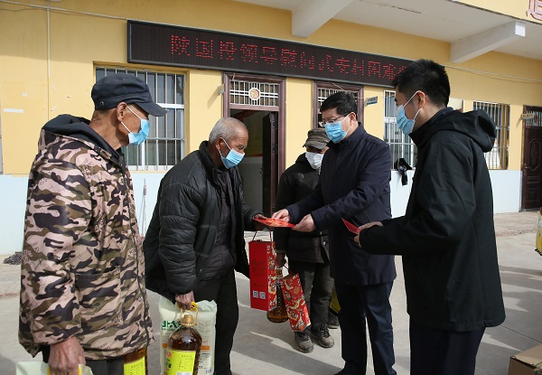 薛季民首先向公司包扶的14户低保户、五保户送上米面油慰问品和公司印制的春联,还为今年家庭大病的杨进坤、姬俊民两位特困户每人送上500元慰问金,细致询问乡亲们生产生活和身体健康状况,代表公司党委祝大家阖家幸福,过一个祥和幸福的春节。