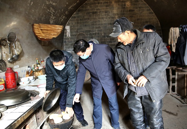 薛季民走村串巷到自己包扶的孙军红家走访慰问,看望了孙军红年迈的父亲,送上慰问品,查看年货置办情况,询问孩子在外打工返乡和孙子在外上学情况。慰问中,薛季民叮嘱村干部要认真做好防疫工作,对外出务工人员及返乡情况要建立清单,做好居家隔离观察,引导群众加强生活卫生和自我防护,确保全村健康平安过春节。