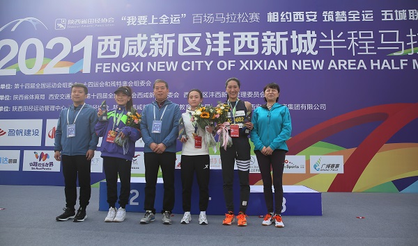 赛后,公司党委书记、董事长薛季民,党委副书记叶瑛作为颁奖嘉宾分别为半程马拉松项目总成绩男女前三名的选手颁奖。
