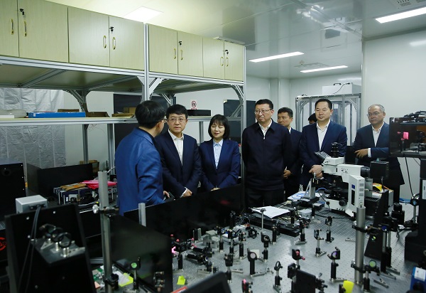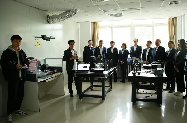 调研期间,姚卫东一行先后参观了光学实验室、光动无人机、多智能体无人机以及水下光学系统,详细了解了相关科技创新成果、具体应用场景等,并认真聆听了关于“临地安防”等相关前沿关键领域科研工作进展情况。