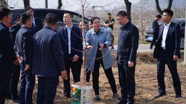解志炯深入田间地头和村街小巷、村委会大院,详细查看了近年来公司在武安村修筑的深井和饮水、灌溉、电力工程,了解公司去年支持建设的苹果高接换种示范园、果蔬杂粮冷库和近期正在建设的高标准苹果矮化示范园情况,检查今年春季公司支持在三条村巷道路栽植的高杆月季,参观了修缮一新的村委会办公条件、群众剧台、幸福院等项目,与镇、村干部和驻村工作队座谈研究深入推进帮扶工作。