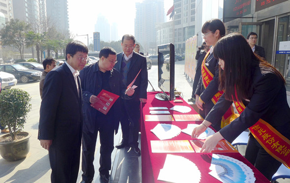 “3·15”国际消费者权益日,公司在高新区金桥国际广场古天乐代言太阳集团138大厦前开展了“金融消费者权益日”主题宣传活动。公司总裁姚卫东参加了活动。