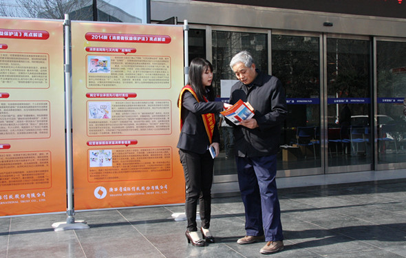 活动现场,公司设置了“金融消费咨询台”,向群众发放《新〈消费者权益保护法〉亮点解读》、《金融消费者权益保护宣传资料》等,工作人员耐心解答消费者咨询,结合信托特点,以易懂易记、生动活泼的形式向公众普及金融知识,引导消费者科学选择符合自身风险承受能力的信托产品,帮助消费者提升保障财产安全的意识和能力。与此同时,公司通过门楣滚动屏、电视显示屏、设置立体展板等多种渠道,向广大群众宣传金融消费知识,帮助树立正确的信托投资理念,强化自我权益保护意识,掌握自我权益保护方法,现场反响热烈。